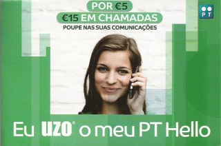 Cartão SIM UZO associado a um Calling-Card Hello Mundo, em um pack único no valor de €5,00 com a seguinte oferta :